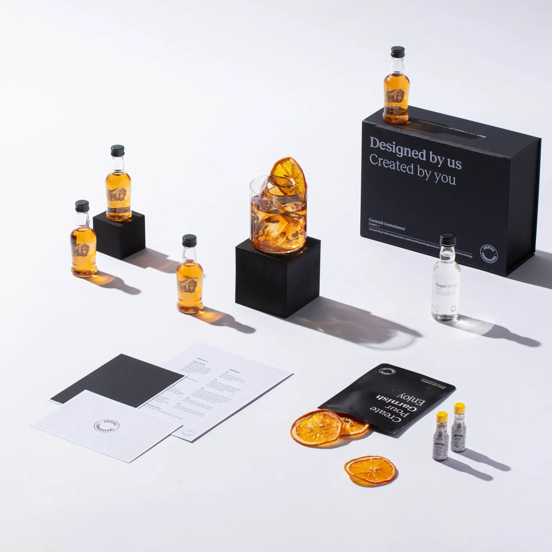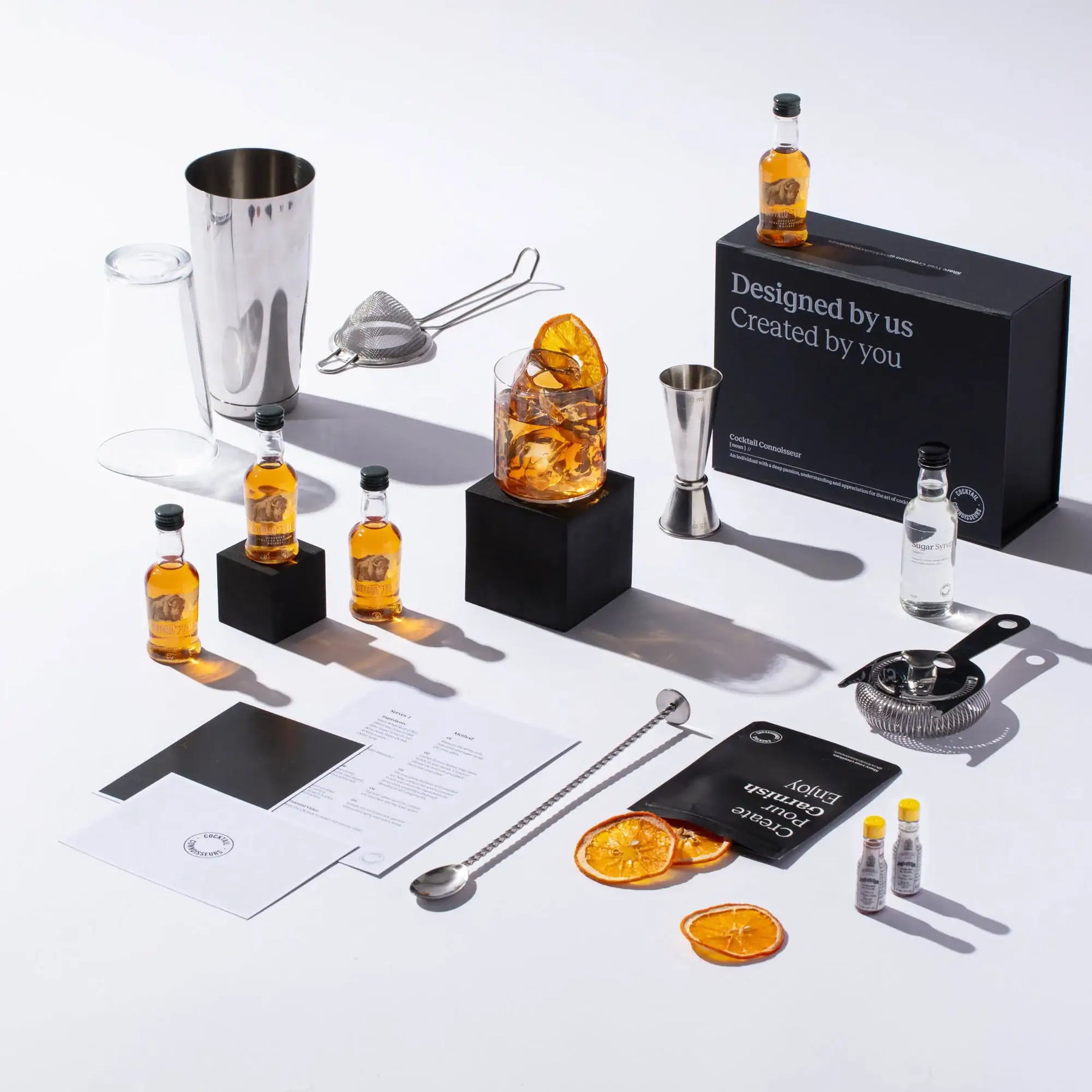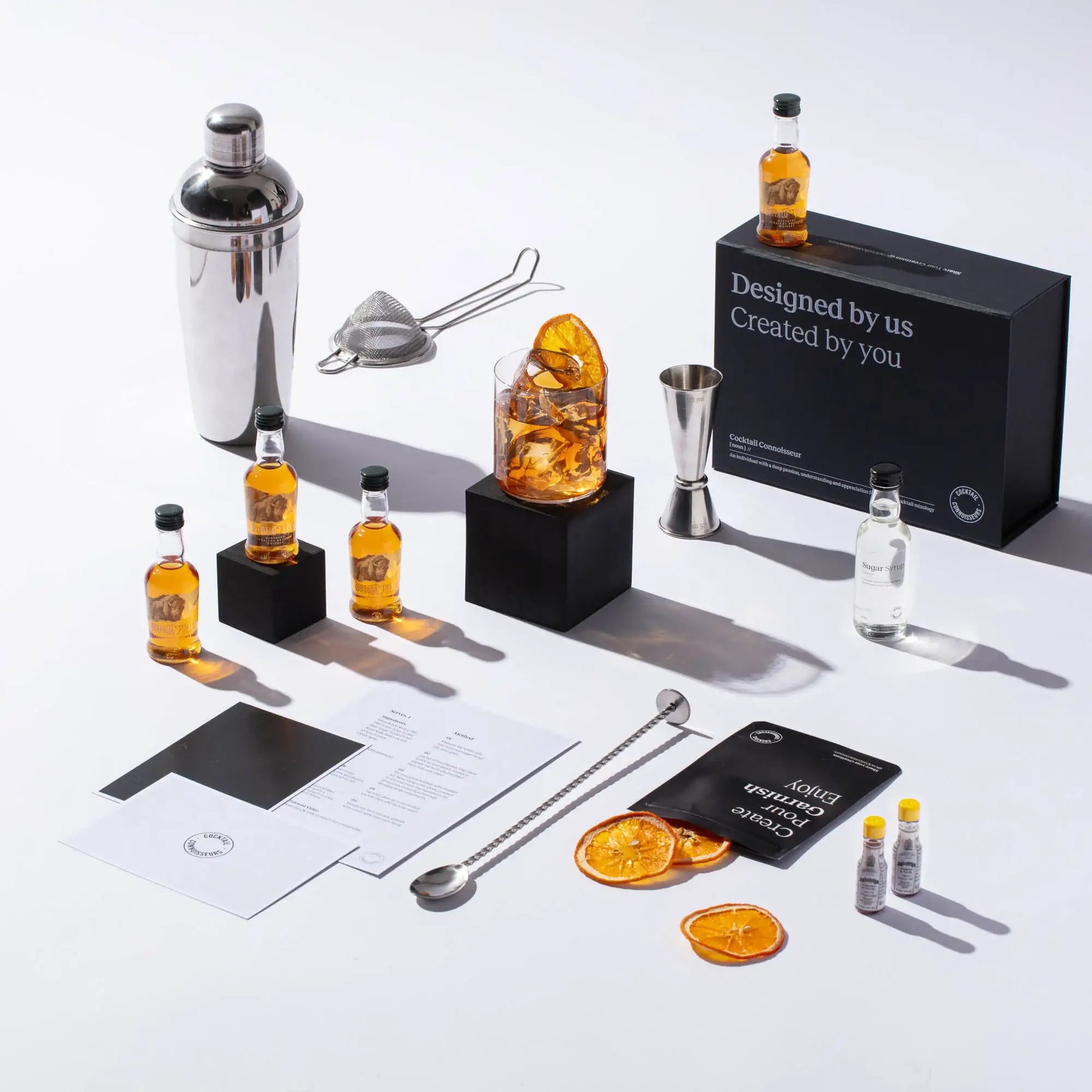 Discover our Old Fashioned cocktail making kit, the perfect whiskey gift set for cocktail enthusiasts. Craft 4 bar-quality Old Fashioned cocktails at home with premium spirits, mixers, syrups, juices, garnishes, recipe cards and tutorial videos - all packaged in an elegant presentation box and delivered to your doorstep. Elevate your experience by choosing our 2-in-1 cocktail kit with bar equipment sets. Order your Old Fashioned cocktail kit today!