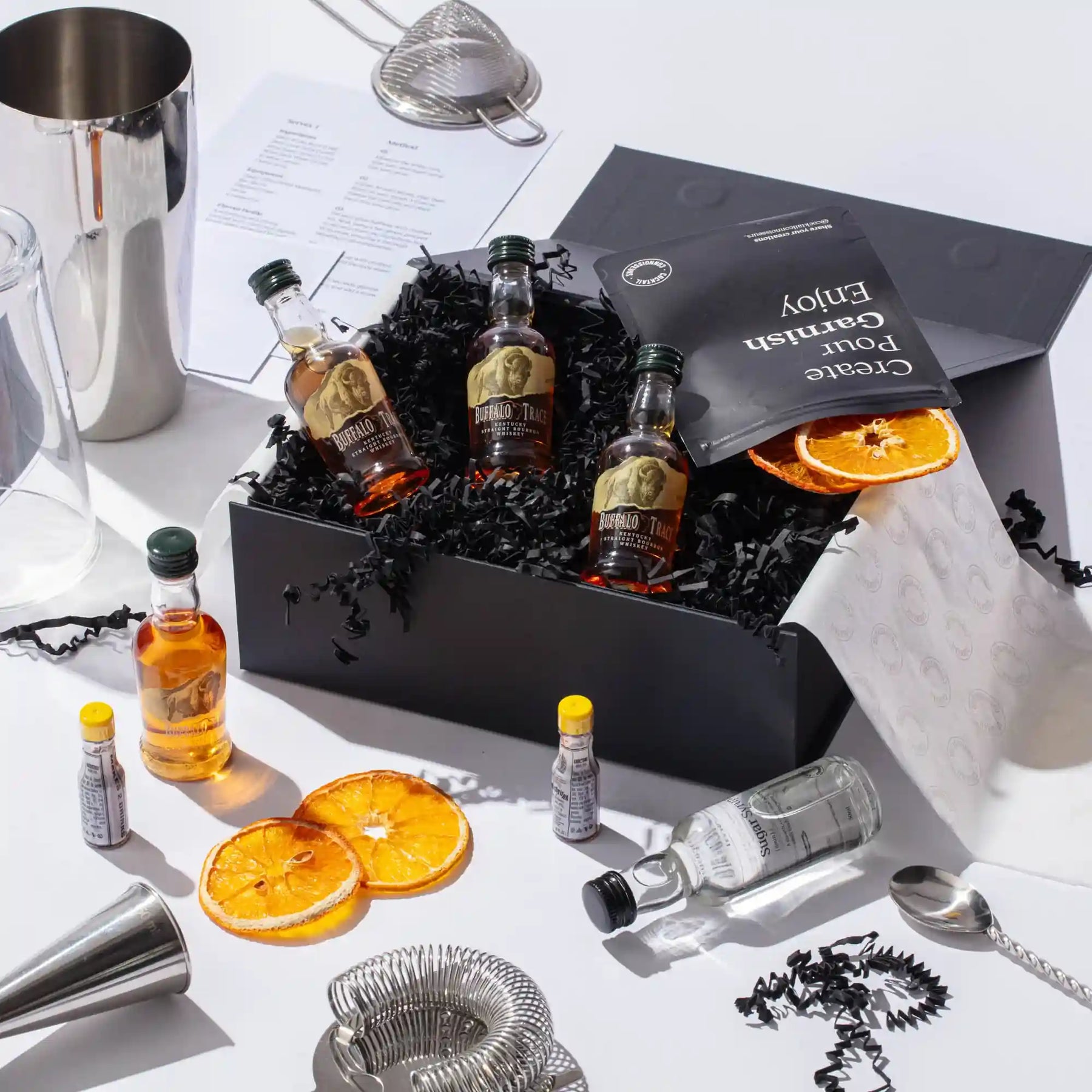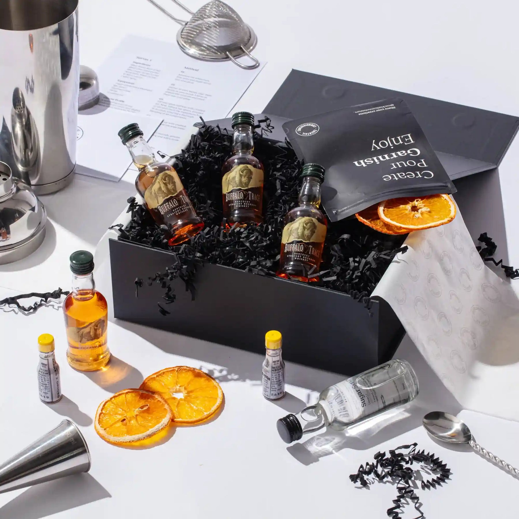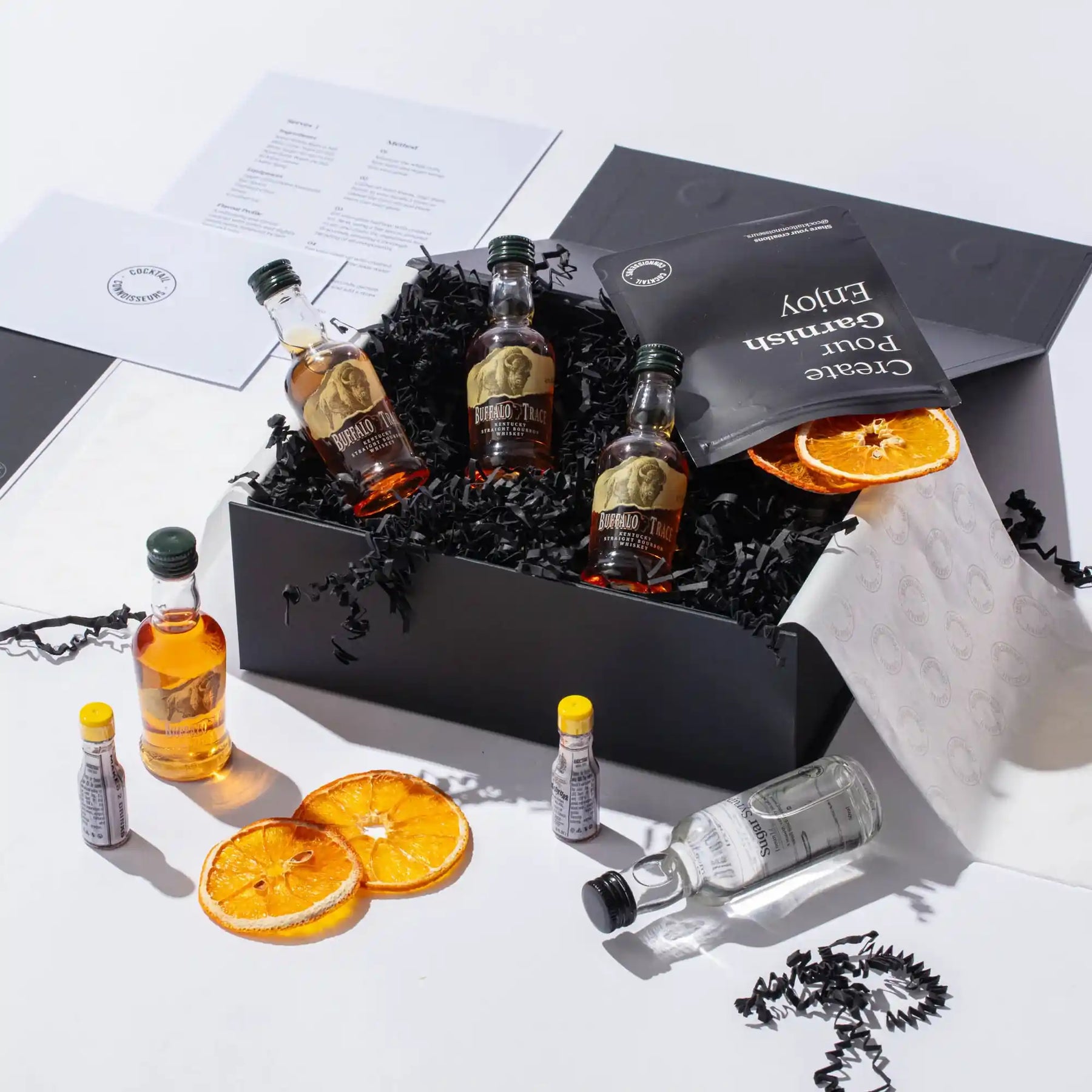 Discover our Old Fashioned cocktail making kit, the perfect whiskey gift set for cocktail enthusiasts. Craft 4 bar-quality Old Fashioned cocktails at home with premium spirits, mixers, syrups, juices, garnishes, recipe cards and tutorial videos - all packaged in an elegant presentation box and delivered to your doorstep. Elevate your experience by choosing our 2-in-1 cocktail kit with bar equipment sets. Order your Old Fashioned cocktail kit today!