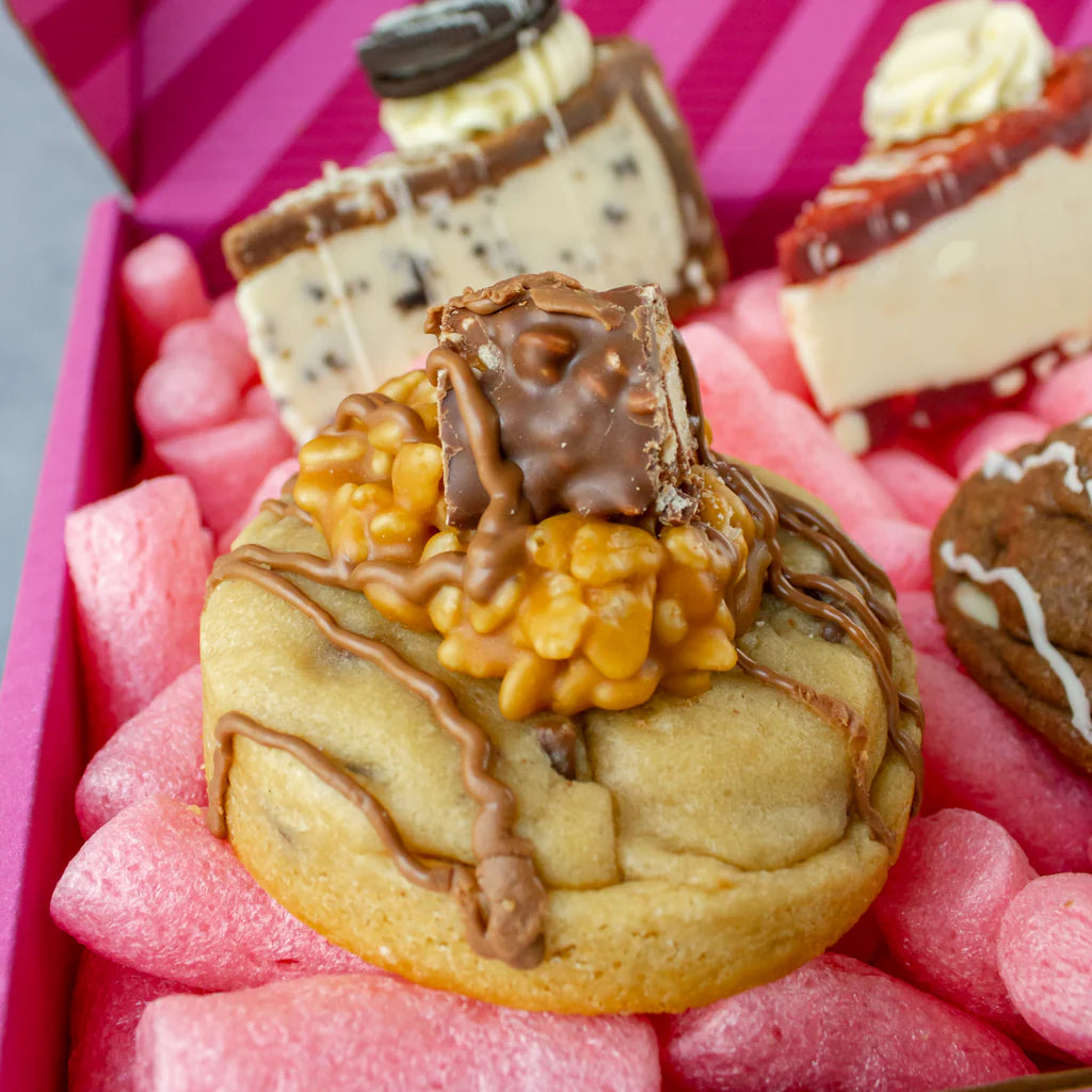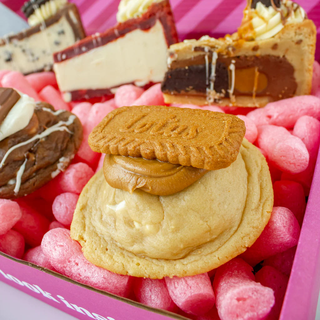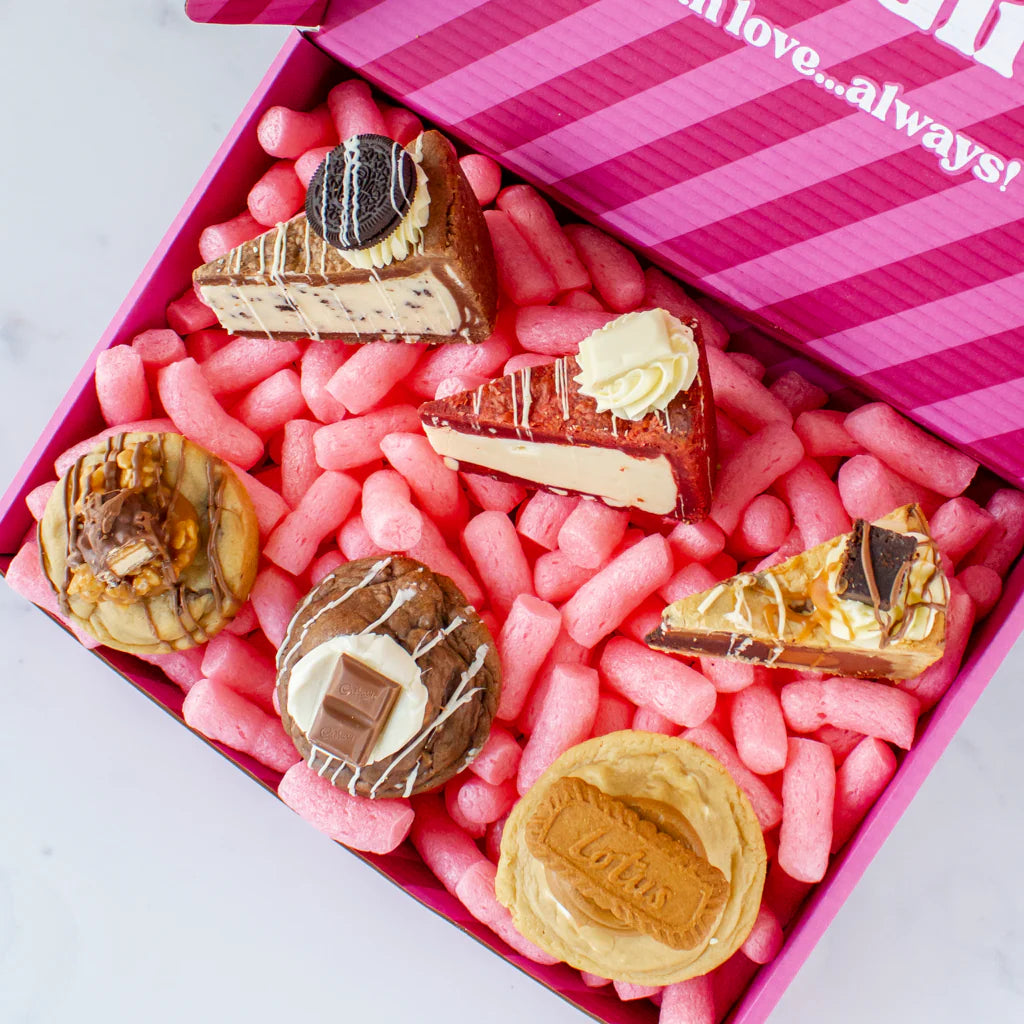 This box includes three Deluxe Cookies — Lion Bar, Biscoff and Triple Chocolate — alongside three Cookie Pie Slices: Salted Caramel Brownie, Oreo, and Red Velvet. Every slice is thick, gooey and fully loaded with flavour.