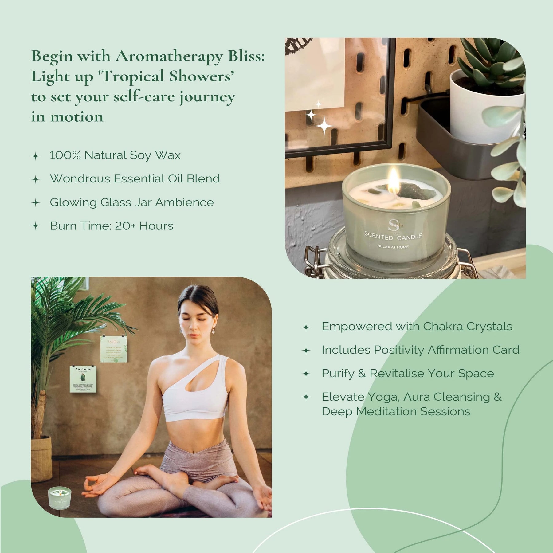 Scented Serenity: Immerse yourself in the calming embrace of our Aventurine Crystal Scented Candle. Let its tranquil fragrance envelop your self-care moments with serenity, transforming each day into an oasis of calm.