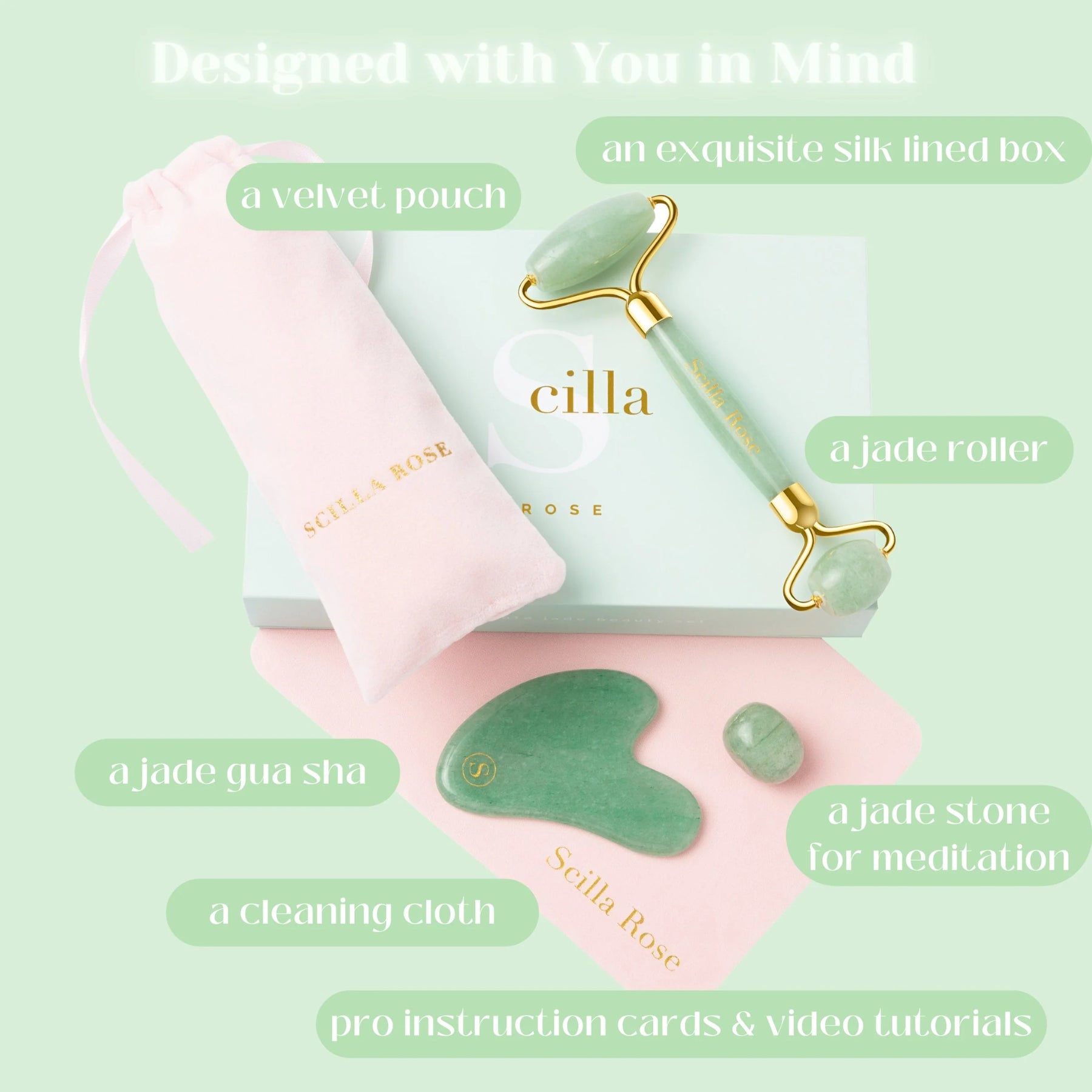 DESIGNED WITH YOU IN MIND. We have put heart and soul into designing and creating the Scilla Rose® Ultimate Jade Roller & Gua Sha Beauty Set. We want you to have a wonderfully natural and satisfying experience.